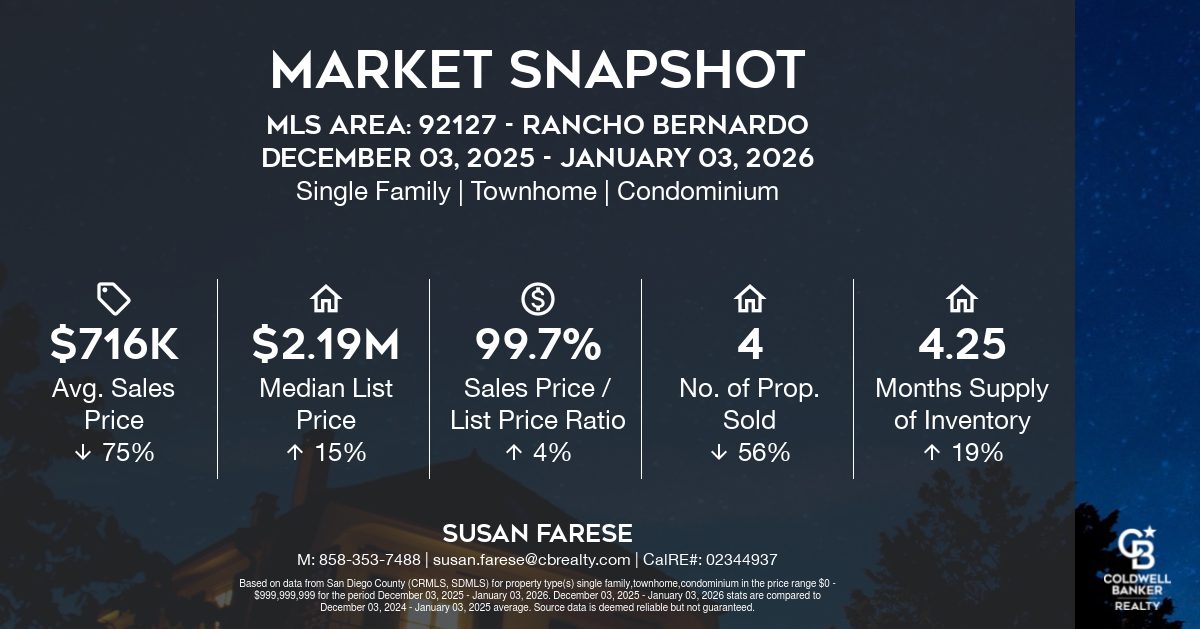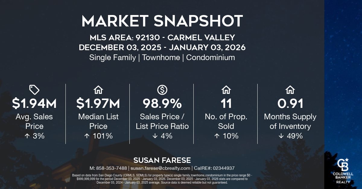 Local Market Snapshots for San Diego County December 3, 2025 – January 3, 2026